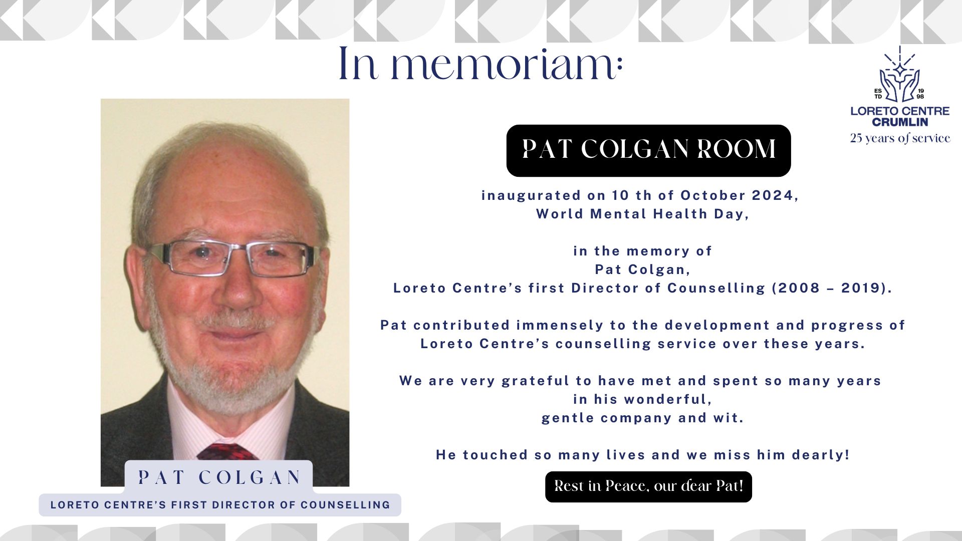 Dedicated to the memory of Pat Colgan, Loreto Centre’s first Director of Counselling (2008–2019).
